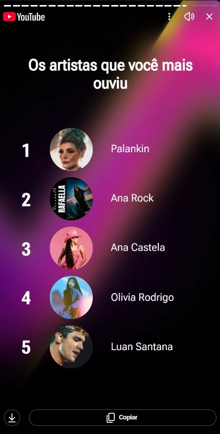 Meus Artistas que eu mais ouvi no ano passado . o restante dos artistas que ouço :sao Adele, Gracie abrams, Jessie J, Taylor swift. uma mistura de Rock Cristão. sertanejo e pop internacional. bem ecletico haha
