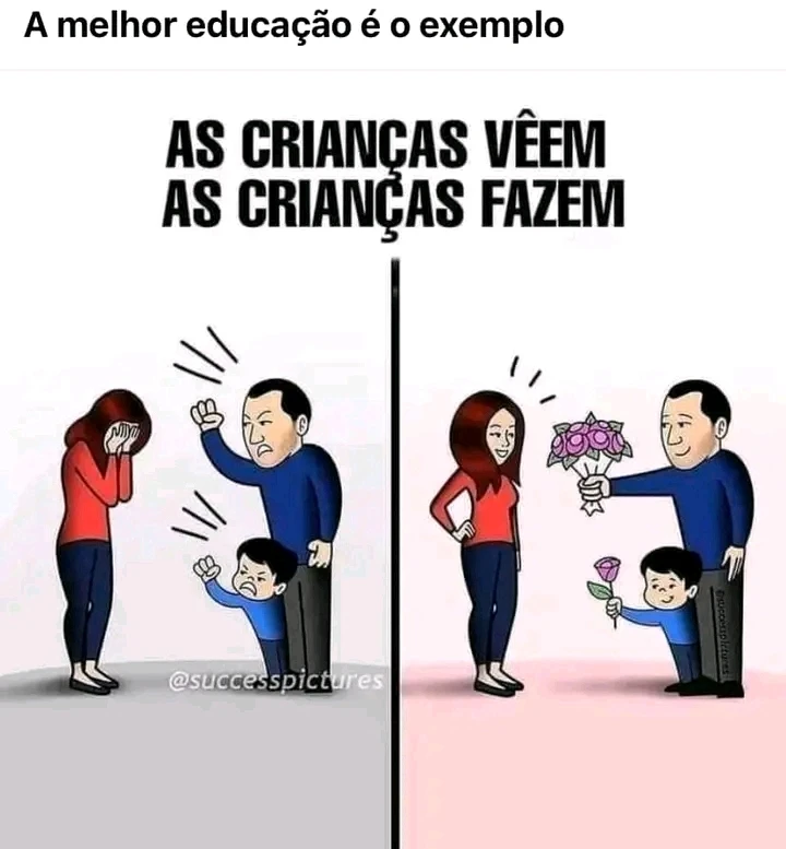 Os pais são o espelho dos filhos.Tome cuidado com a maneira como você se relaciona com seu cônjuge e, sobretudo,com sua prole.Uma criança bem cuidada e amada se tornará um cidadão justo e honesto.Educaçao e bons modos vem de casa,e não da escola ou da rua.Vamos zelar pelos nossos pequenos.