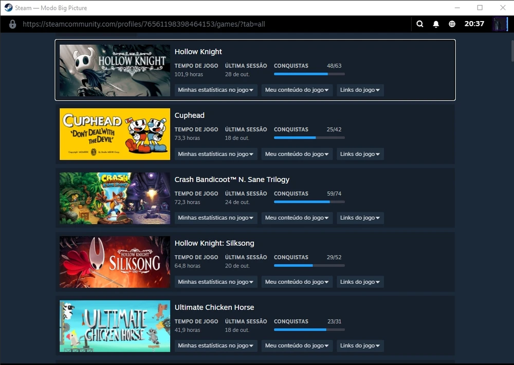 Minha conta da Steam Com toda certeza hollow Knight (editado)