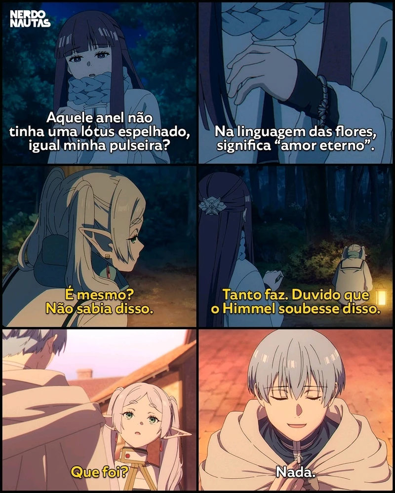 Existem por aí pessoas como Himmel... Gente que faz promessas silenciosas. Que entrega significado sem fazer propaganda. Que ama de um jeito que quase ninguém percebe, até que seja tarde demais. Na cena, o anel tinha uma lótus espelhada. Na linguagem das flores, “amor eterno”. Ela não sabia. Ele... ler mais