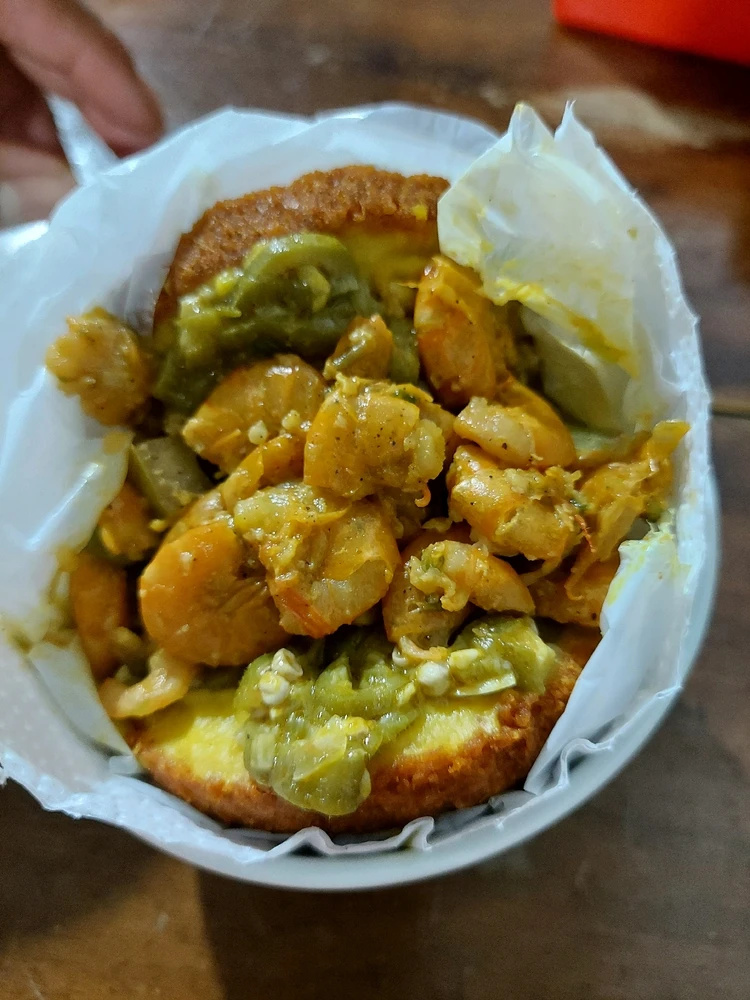 Bolinho feito com feijão fradinho... Recheio:Vatapá, Caruaru,tomate verde e camarão