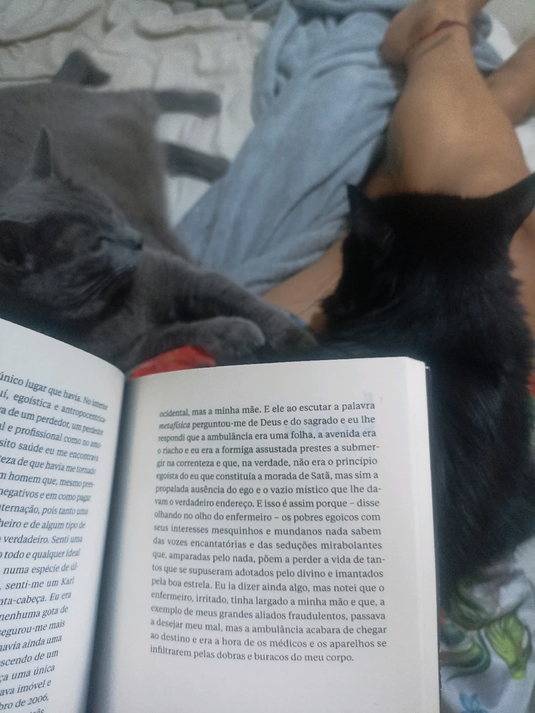 Peguei um livro, pra eles é momento de ficar junto, ótima forma de terminar a segunda 🐱 (editado)