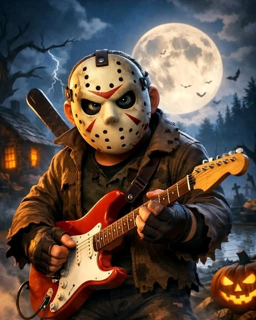 Que esta sexta-feira 13 seja barulhenta como uma guitarra distorcida, sombria como a noite de terror e épica como Jason Voorhees detonando riffs numa Fender sob a luz da lua! 🎸