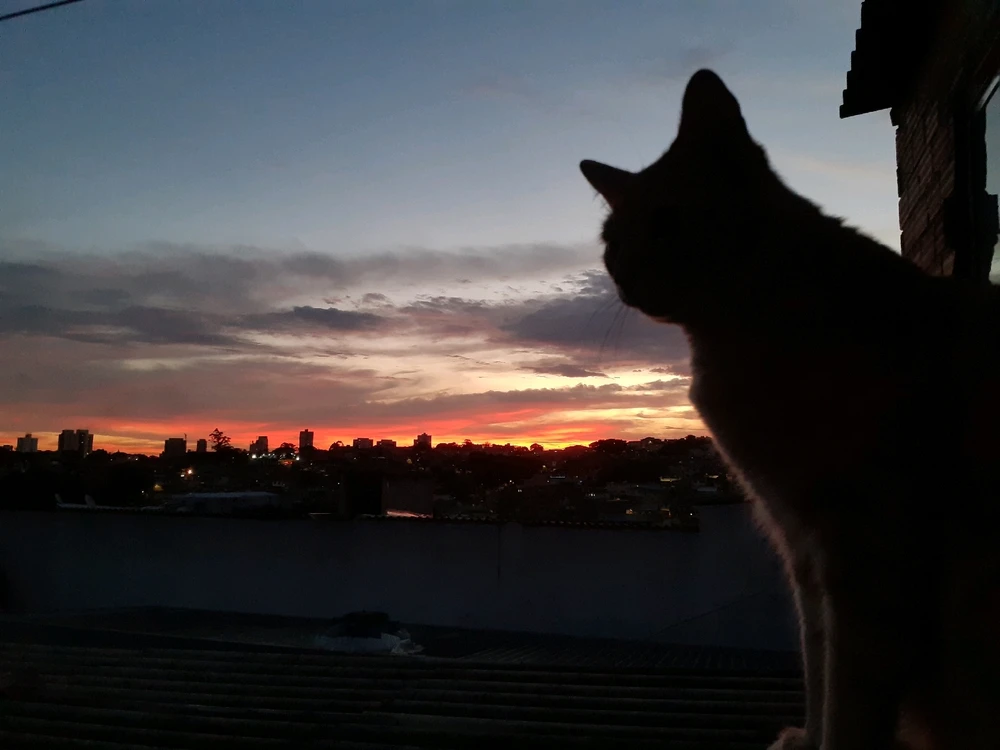 Um gato que tem entre 10 meses e 10 anos kkk De bico pq estava vendo filme de cachorros 🎥 (ilha dos cachorros) (editado)