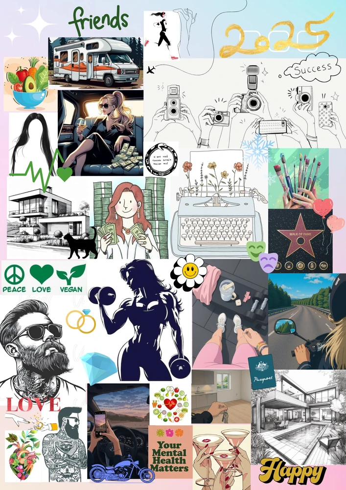 Um vision board, ou quadro dos sonhos, é uma ferramenta visual usada para representar objetivos, desejos e sonhos de forma clara e inspiradora. Ele é geralmente feito colando imagens, palavras, frases e símbolos em um painel com o intuito de visualizar e atrair aquilo que a pessoa deseja conquistar... ler mais