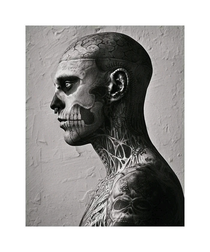 Рик Дженест ( Rick Genest) - канадская модель из Монреаля, больше известный как "мальчик-зомби" (парень-зомби) (Zombie Boy) из-за татуировок, покрывающих все тело и изображающих скелет человека. Благодаря модификациям тела, Рик принимал участие в представлениях цирка «Freak Show«, множествах... подробнее