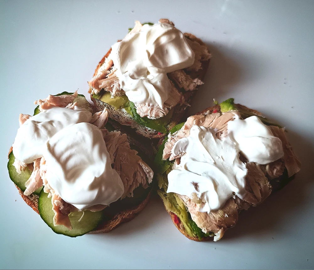 Пора бы и подкрепиться 3 бутера с авокадо, грудкой и сметаной И ароматный кофе