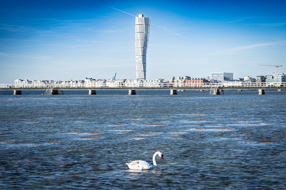 Min favorit badställe i Malmö. Tog bilden på en vackert svan i vattnen som jobbade lite som en model för mig. Också med mest kända byggnaden i Sverige i bakgrunden ”Turnins Torso”, eller som jag kallar den ”Rullad Tidning”