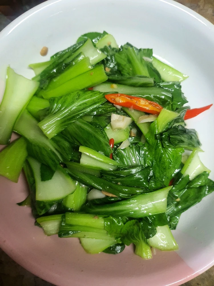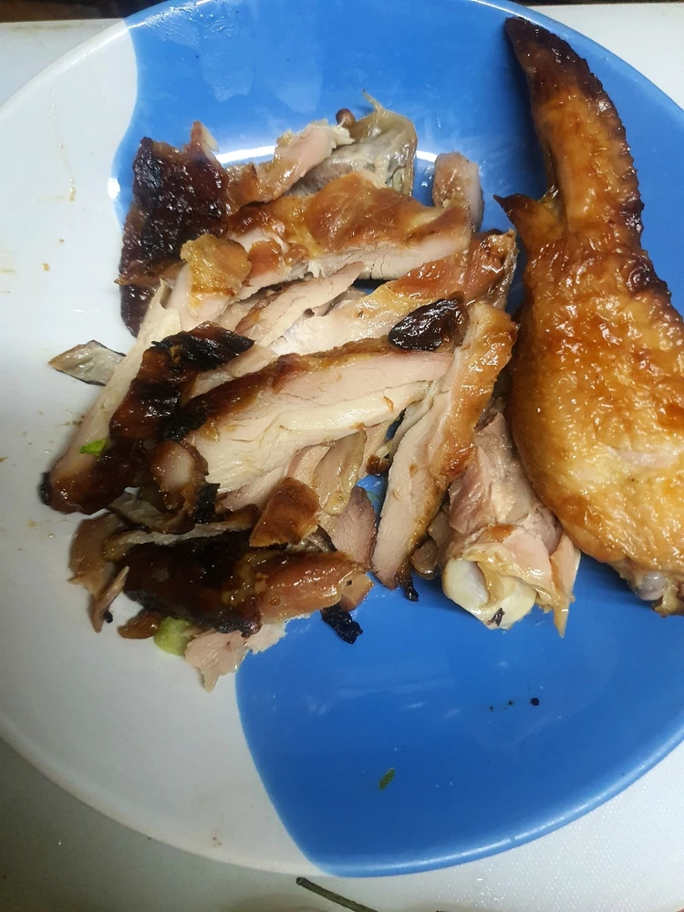 Stir-fried cabbage with grilled chicken.