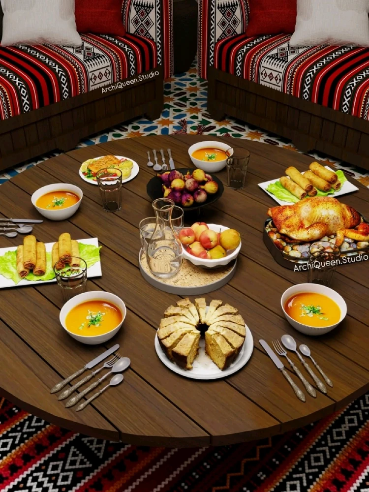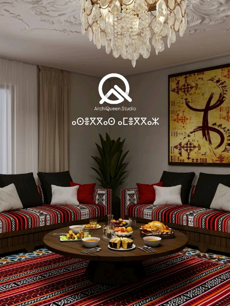 My design for the Algerian Amazigh New Year Qith some traditional textiles and Zellige.