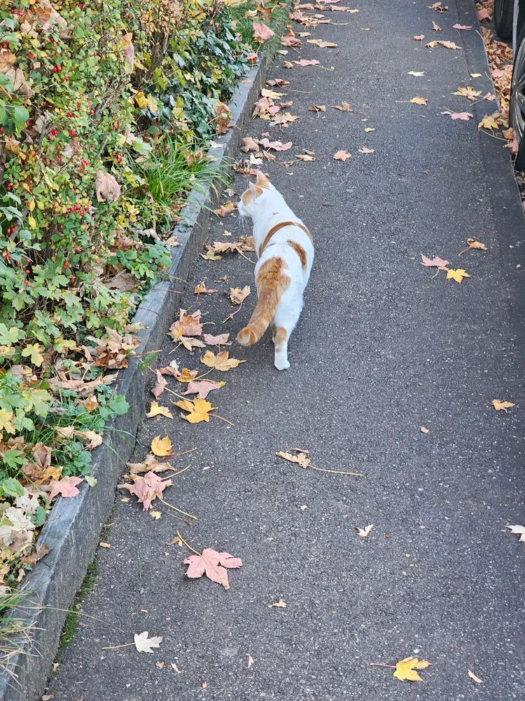War am spazieren und dann hat die Katze angefangen 2 min lang mit meter abstand vor mir zu laufen.. I miss you random cat..