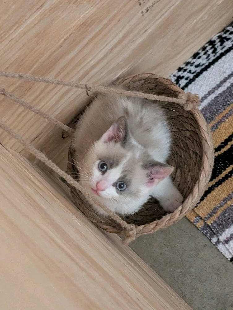 When my Pidgey was little she loved sitting ANGRILY in this basket. 🥰