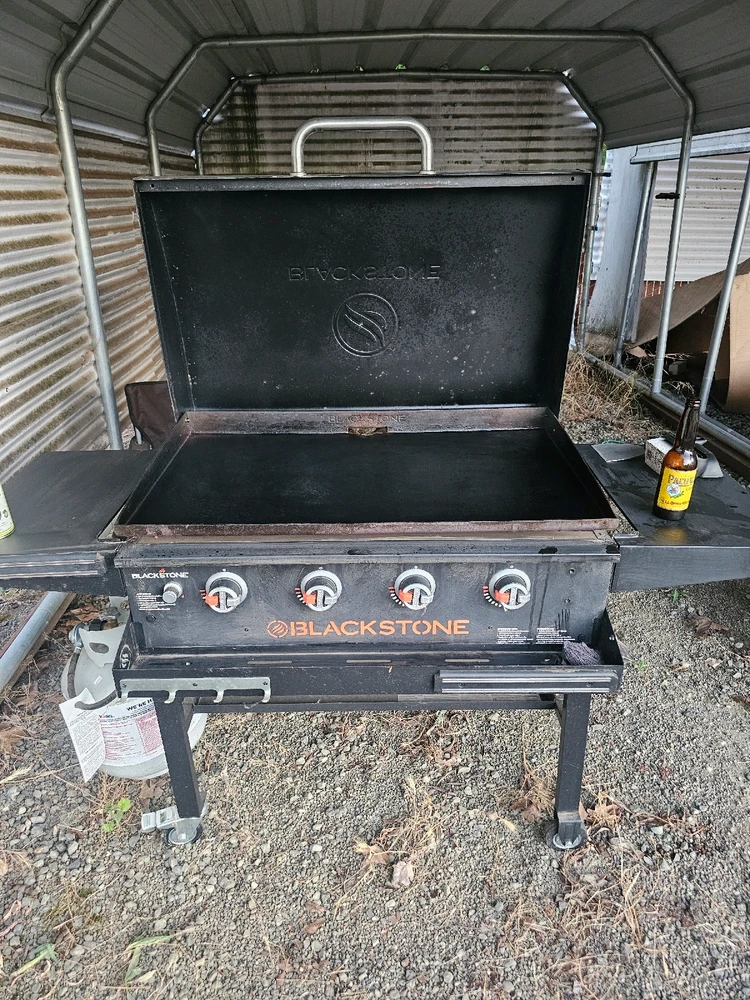 Tis the season. Seasoning the Blackstone in preparation to cook outside a lot more since it's warm (and not raining) again.