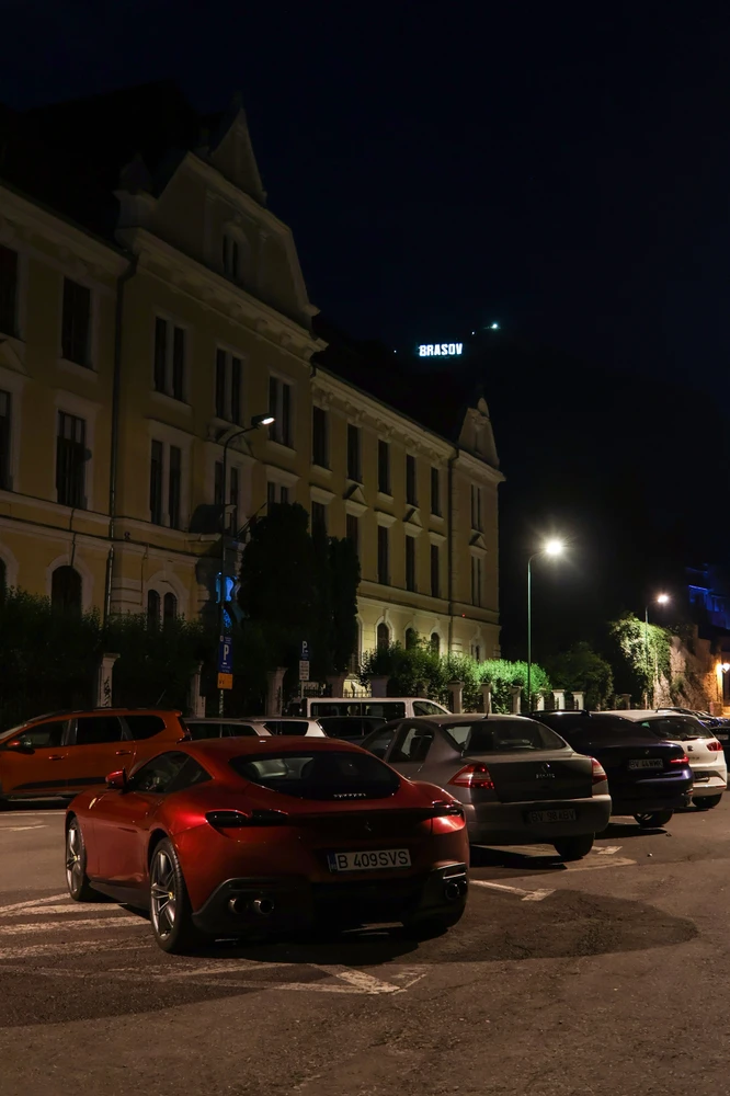 Ferrari Roma spotted in a park lot in Brasov Night time photo.