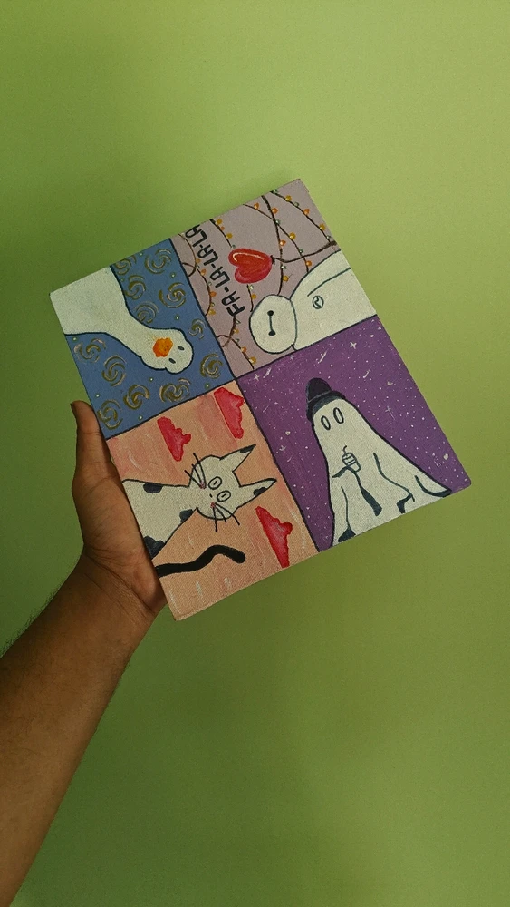 Scketched on paper with pencils - acrylic on canvas