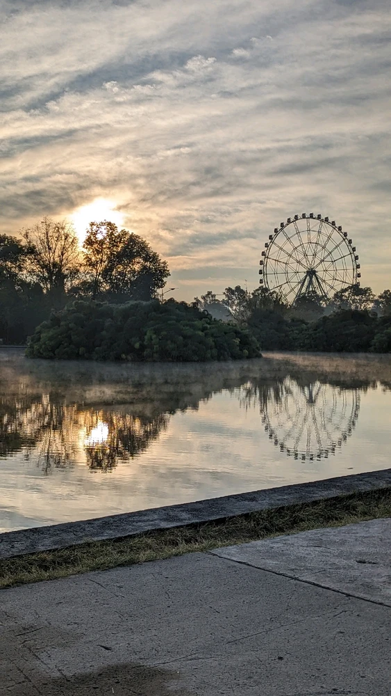 You get this beautiful view running at 7 am in Chapultepec park.