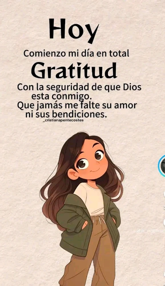 Hoy Comienzo mi día en total Gratitud Con la seguridad de que Dios esta conmigo. Que jamás me falte su amor ni sus bendiciones. Today I begin my day in total Gratitude With the assurance that God is with me. May I never lack his love or his blessings. Oggi Inizio la mia giornata in totale ... read more