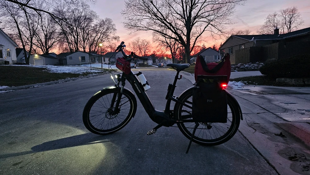 A chilly commute home with a beautiful city sunset.