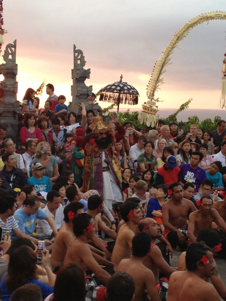 stunning cliffside temple overlooking the Indian Ocean .. I’m dead serious this place takes place at sunset, so you get a dramatic backdrop of the sky turning orange and red over the ocean cliffs 😍 Cons : Monkeys can be mischievous. They may try to steal bags, cameras, or snacks from tourists 🙄🙄