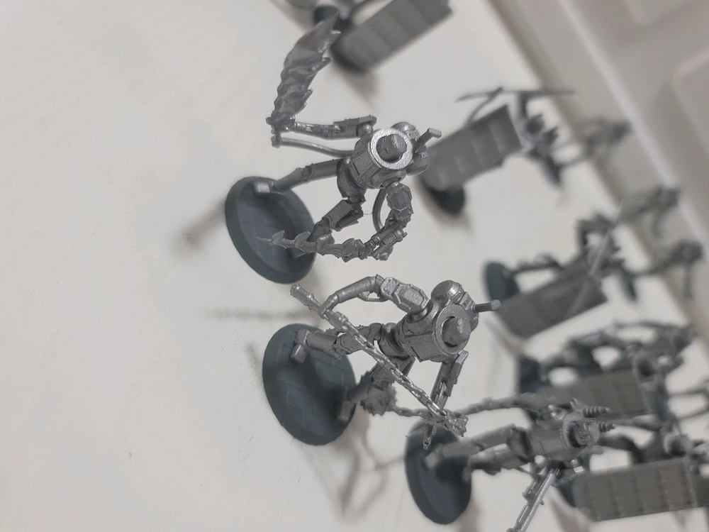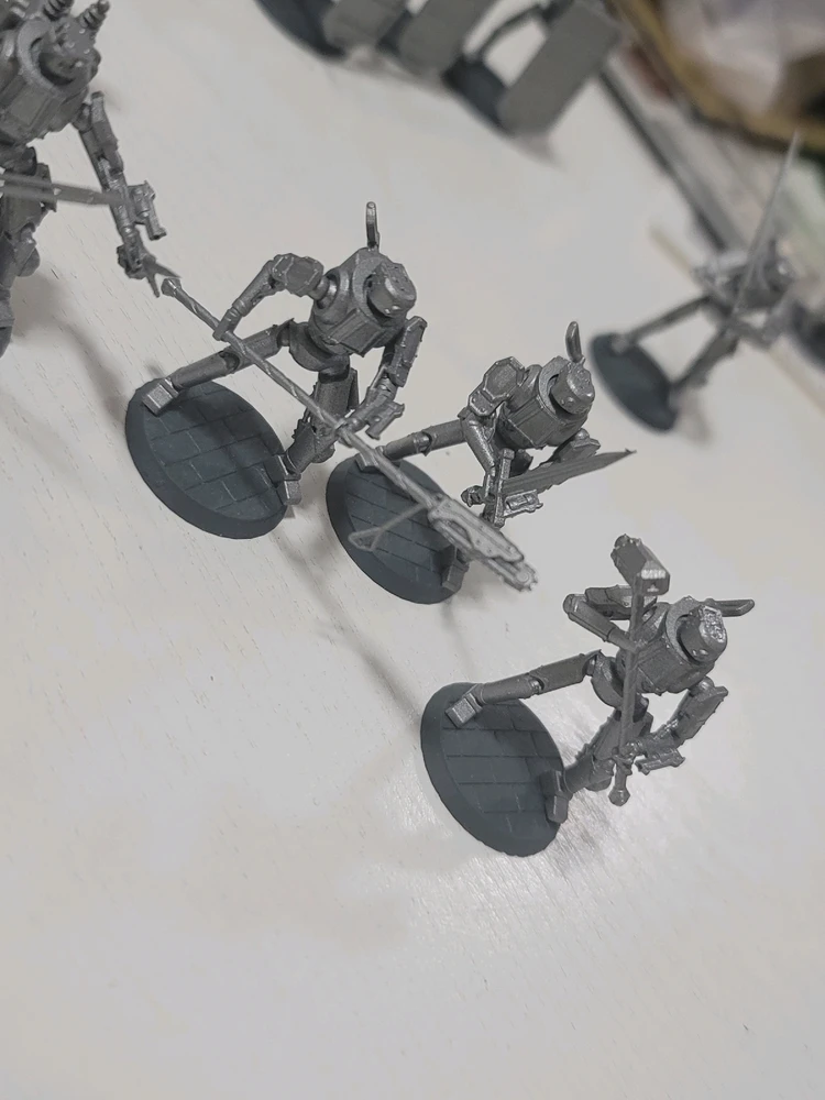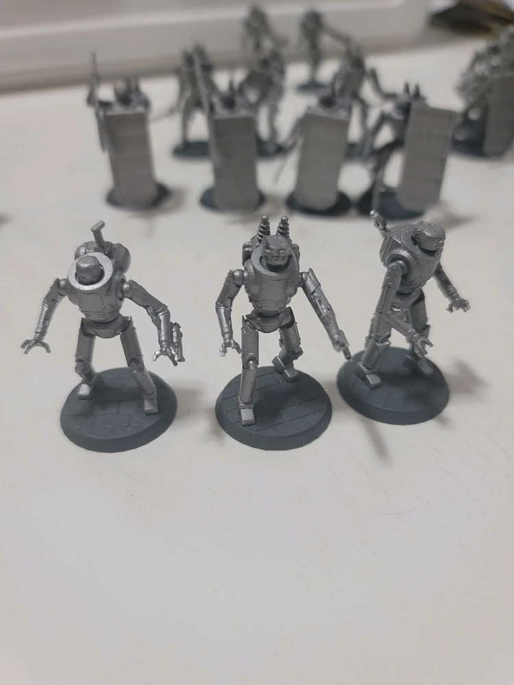A while back I needed some automatons for an arc in my campaign so I designed these in Blender and 3D printed them. They all have the same basic body, but they are all either clockwork, steampunk, or electropunk.