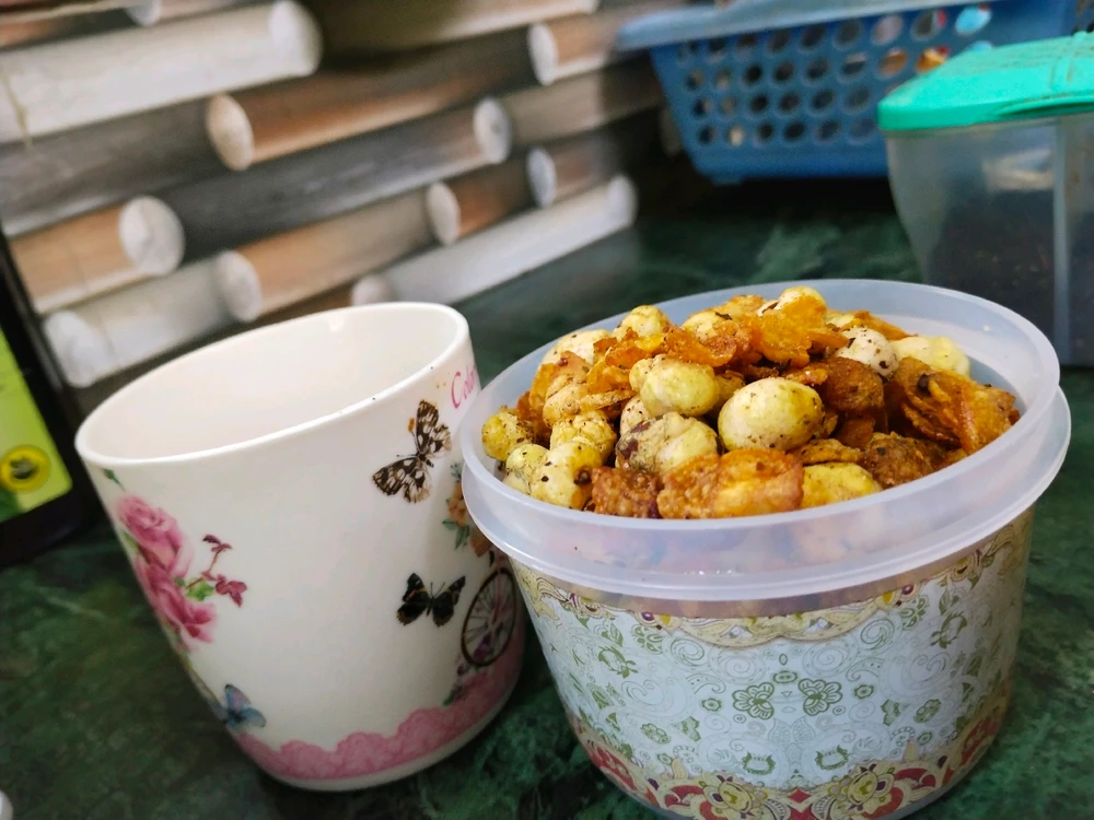 Im so damn tired. Btw I made bhujia(healthy cause I air fried makhana, cornflakes and peanuts)