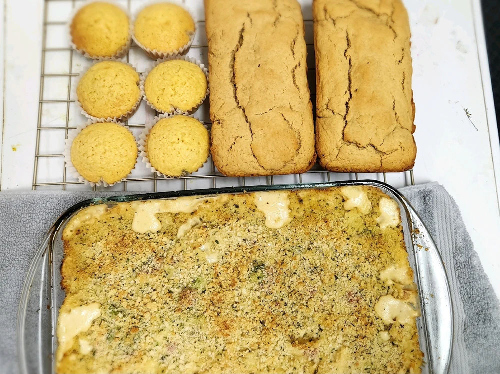 Peanut butter bread, cornmeal muffins and creamy chicken cordon Bleu casserole