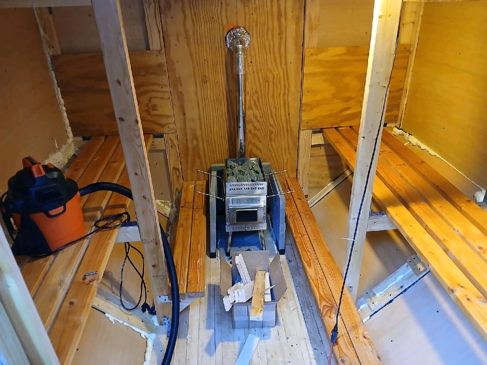 I had a single picture and idea of a wood burning budget sauna and I made a sketch and built the rest with my mind and tools. And here it is.