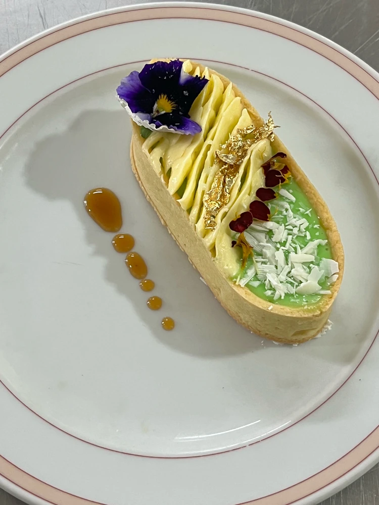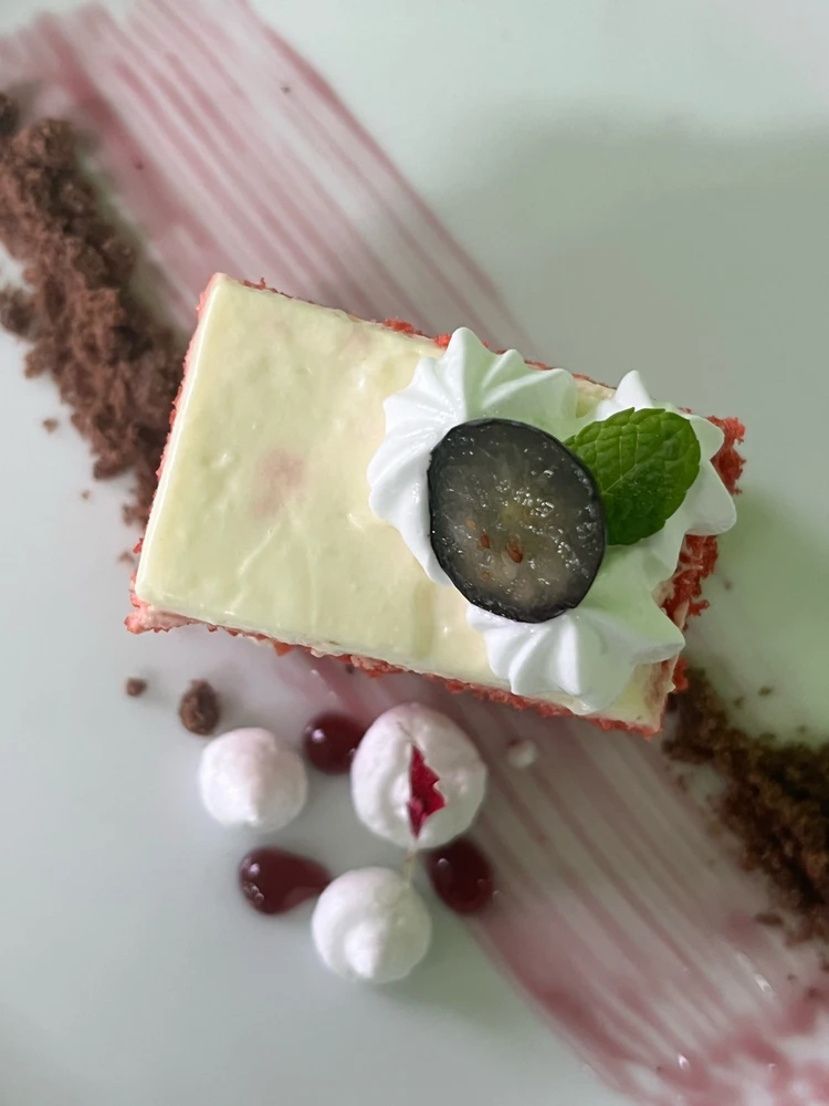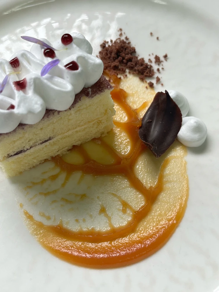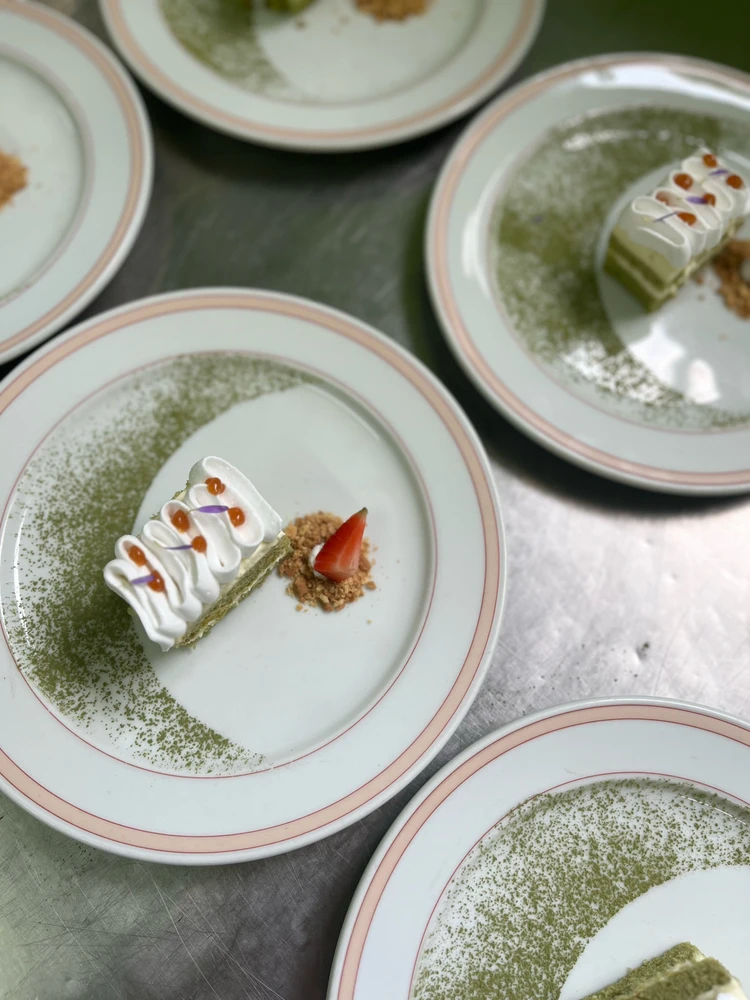 Mille crepes peach flavor combined with americano