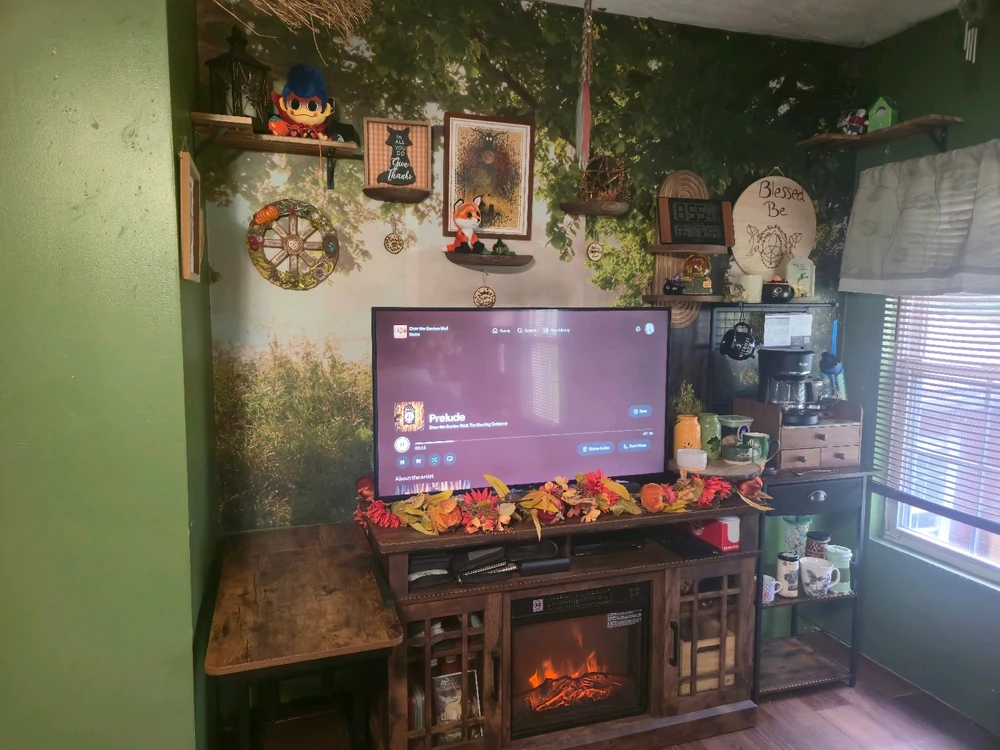 This is how I decorated my one corner this last autumn 🍂 TV has been moved to the otherside of the room since then, but I was proud how this turned out 🧡
