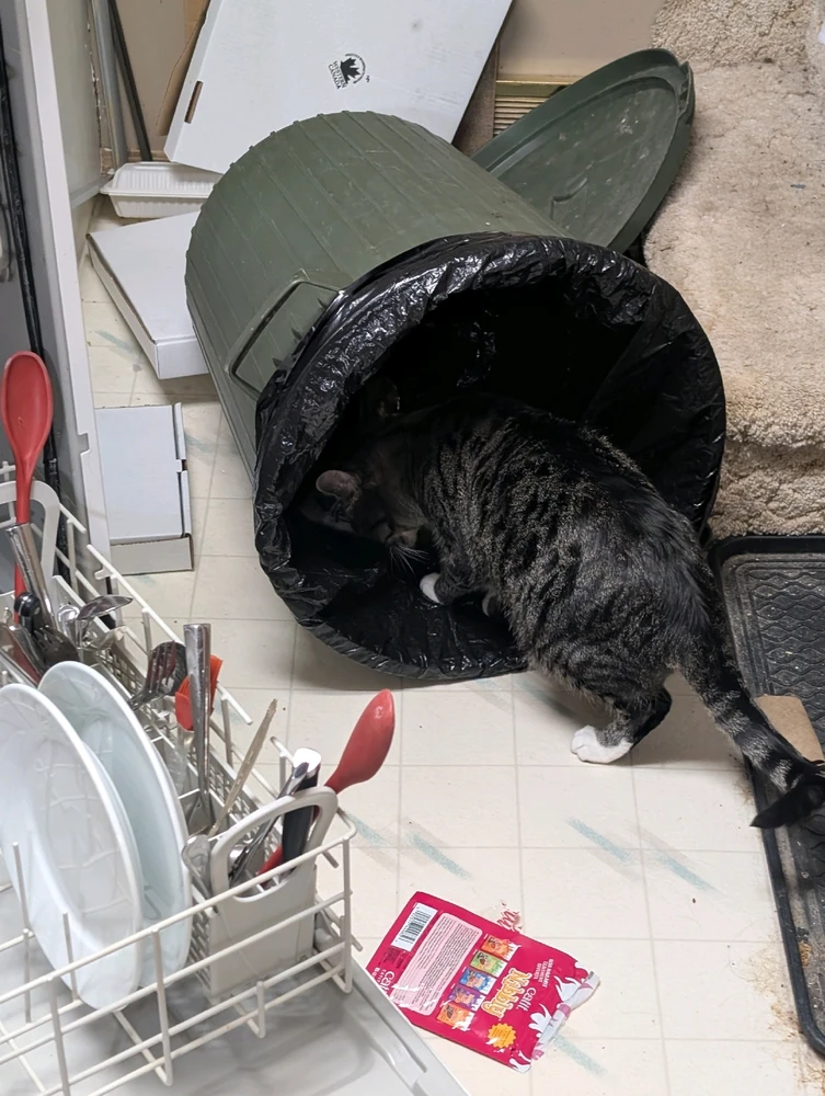 He knocked it over 4 times, then I finally put the lid back on and he gave me such a sad and defeated look lmao 🤣🤣 This cat has taken years off my lifespan, I swear..