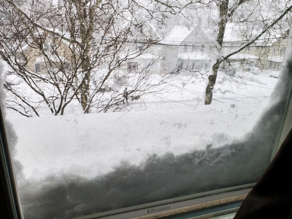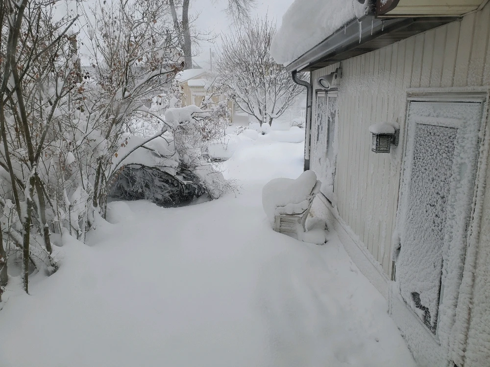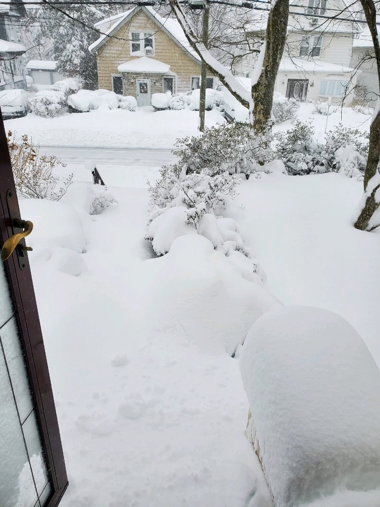 Some pictures of the Blizzard on the East Coast. I had to push the snow with the front door.