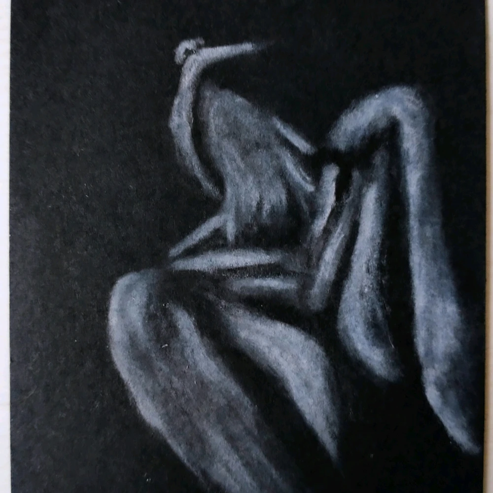 White chalk on black paper.