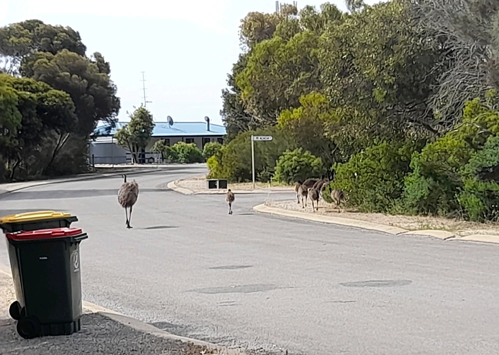 Was on a short drive when family and I came across an emu and 10 youngsters. Seen plenty of young chicks while they still have their stripes but this was something so much better ^-^