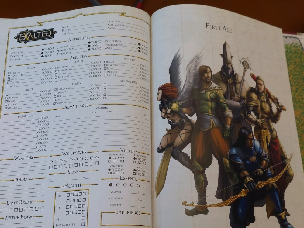 Getting my hands on the 2nd edition of Exalted is quite awesome the book is really beautiful and I've been meaning to get into it for quite some time many people say that starting an Exalted game is like starting a D&D game at level 20 I personally can't say if it's true as I've not tried it but... read more