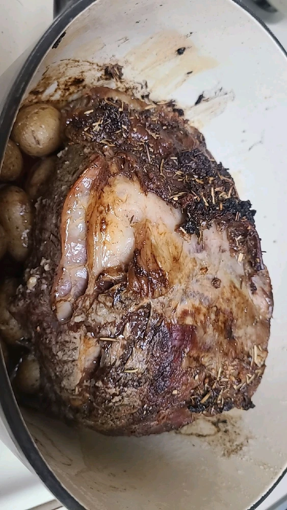 Made an amazing amazing Prime Rib, was so happy with how it turned out, wish they weren't so expensive so I could make one again, got a really good deal on this one. Made it in a cast iron pot using baby potatoes instead of a tray to keep it off the bottom, was so good.
