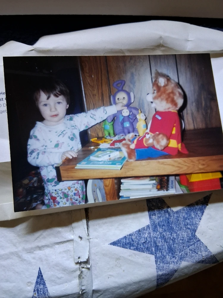 Was probably around 2 or 3. Found while cleaning my late mom's home. Fun fact- the original distributors of Teddy (worlds of wonder) was among one of the first companies Nintendo approached when trying to bring the Famicom AKA NES to America. They declined but I gotta wonder if they'd still be... read more