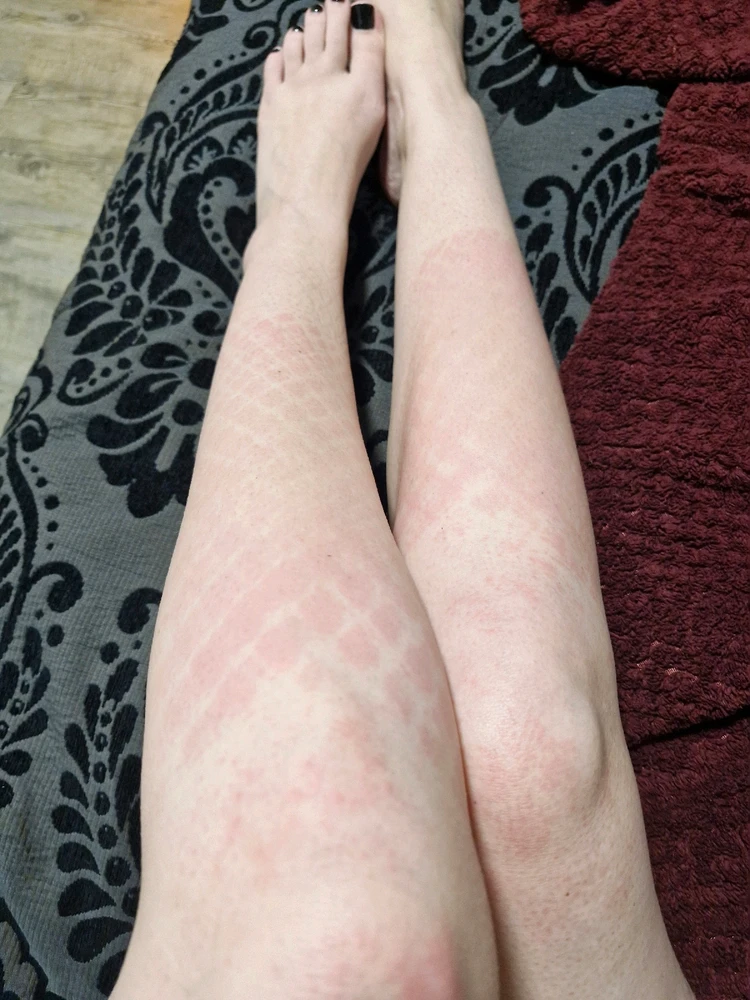 Pale completion + fishnets + sun, Do not mix. 🥲 I'll remember to put sunscreen on my legs next time #sunburn