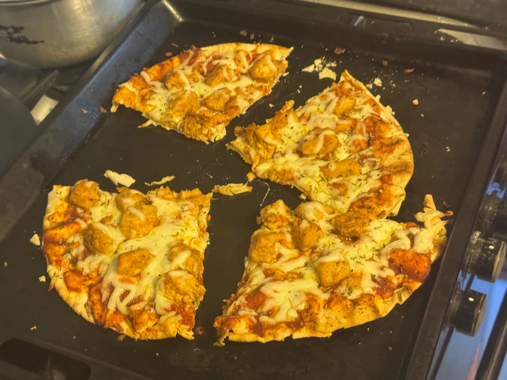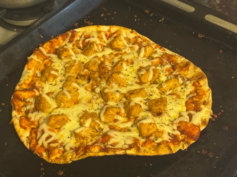Grilled flatbread with some olive oil spray, cayenne pepper powder and black pepper 🌶