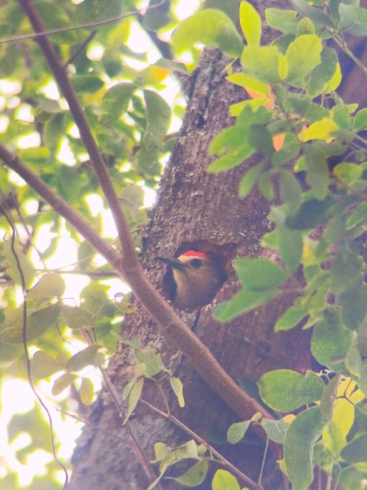 A male Melanerpes rubicapillus made a cavity in a Pithecellobium dulce tree.