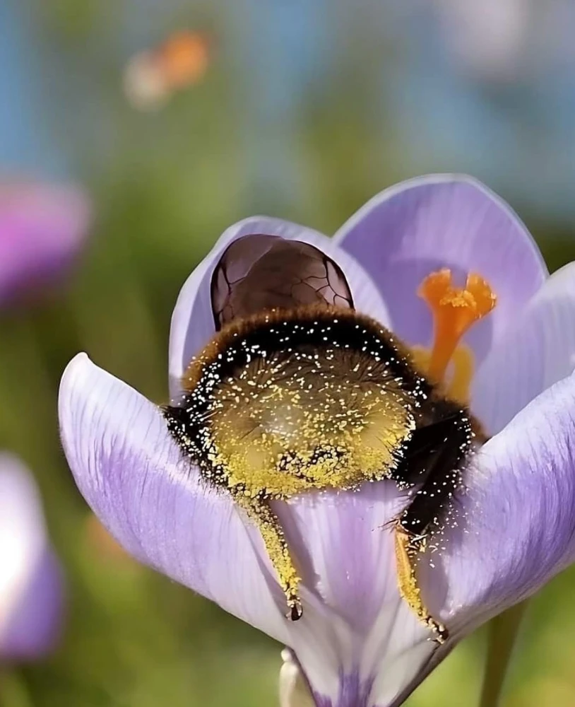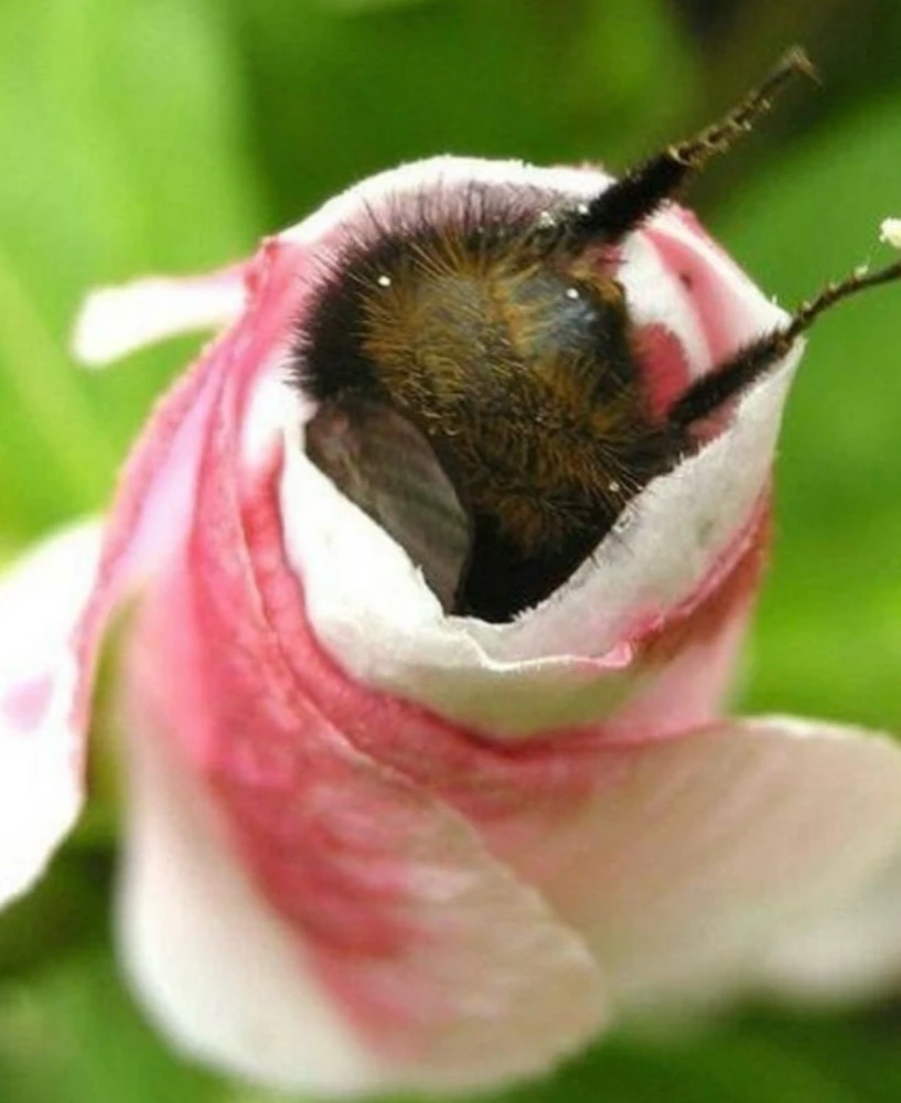 Bumblebees work tirelessly collecting nectar and pollen, but when they get exhausted,they sometimes fall asleep right on the flowers they visit🥰🥰🥰