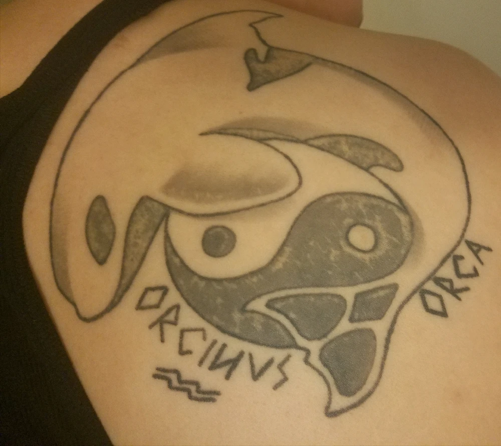 This one is mine. I love Orcas and I wanted my own artwork to show that. I might get it touched up at some point