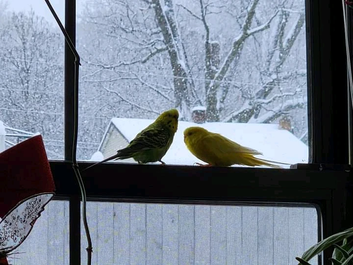 Stunning picture I snapped of my Parakeets during the last snow storm