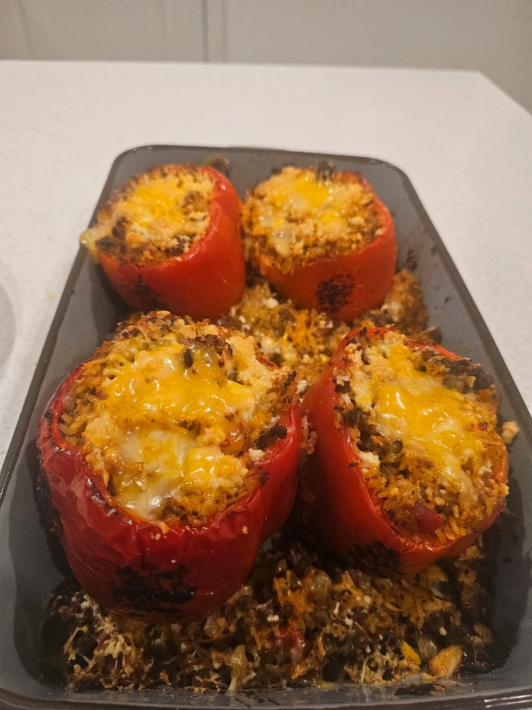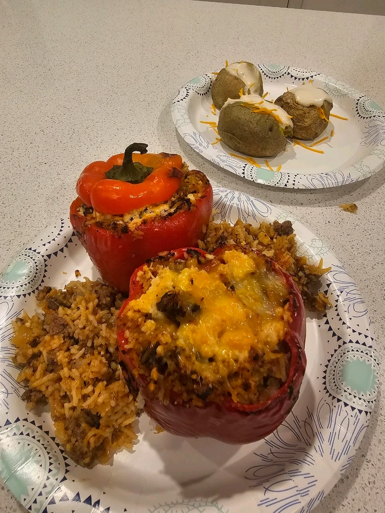 As a last supper I went with about 4lbs of meatloaf filled with all kinds of peppers, onions & garlic. For the sides I went with homemade mashed potatoes with roasted garlic, a brown gravy and steamed california medley veggies! Viva la respect and gratitude!! ^-^ Rawr!