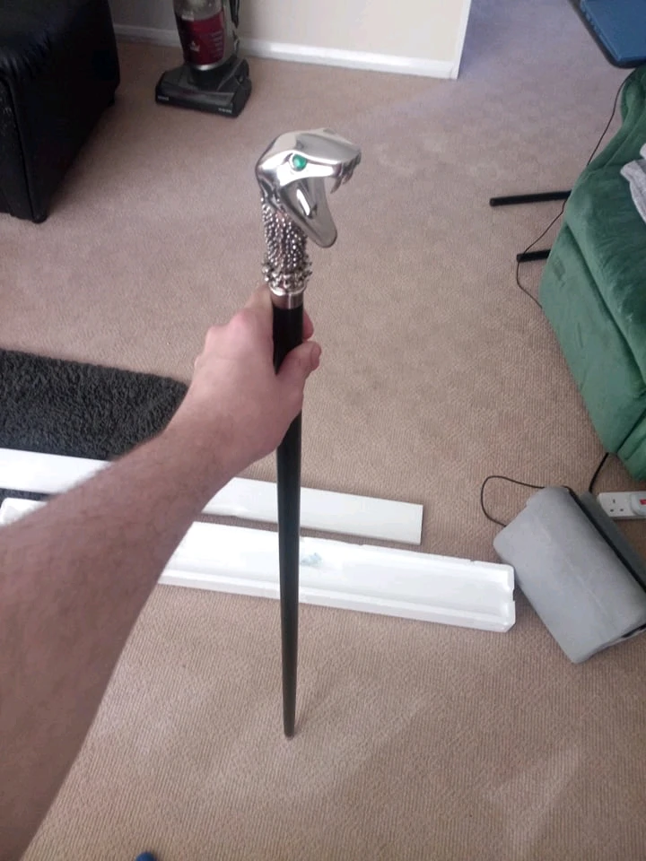 Got the noble collection Lucius malfoy cane , yes the snake head is removable just like the movie revealing the wand inside