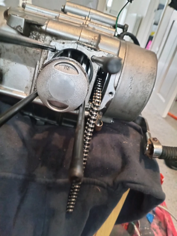 Progress is being made, this engine and bike, there has been a lot of surprises. It's a front blower single cylinder so the cam chain goes around next to the top of the cylinder head. There should be a roller on a pin. We'll that would have just been bouncing round. Seems the peeps who worked on... read more