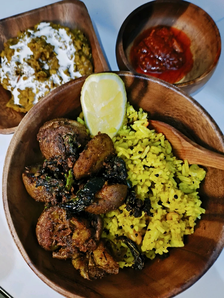 Lemon rice Spicy crispy basil baby potatoes Dal Let's eat! ✨🔥