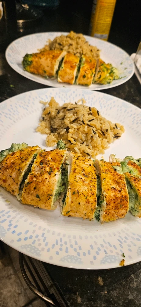 Made a chicken roulade with ricotta and spinach filling and rice 😊😊