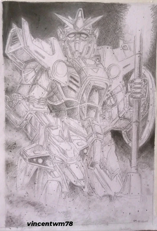 Done with graphite and charcoal. Have drawn the other four Gundams. Thinking about drawing Epyon and Tall-Geese as well.