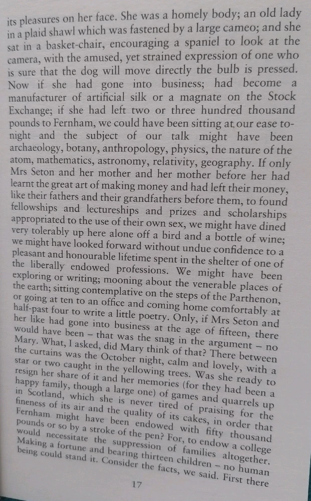 Virginia Woolf - A Room For One's Own In the right conditions one can dare think. Nowadays we have better conditions and we see the numbers of women in stem and arts go up because they can afford to think of atoms and cosmology and painting and writing. Nowadays women are also allowed in... read more
