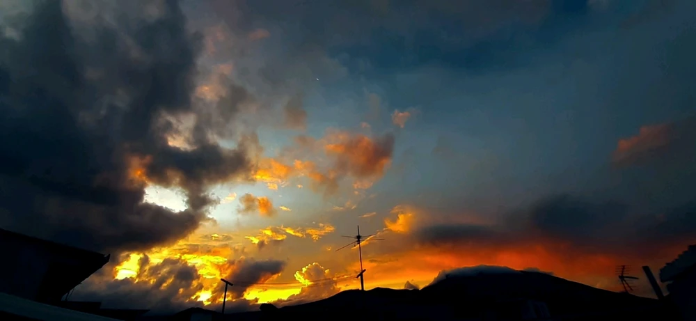 The sky paints a goodbye with shades gold and fire✨️